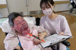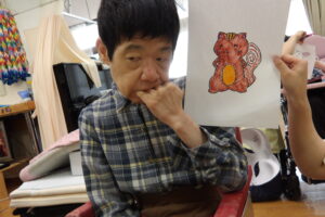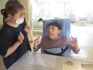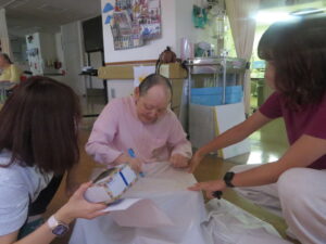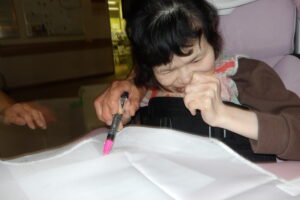 電気点検のため、一部電気がつかない場所がある中、3チームに分かれて、のぼり旗を作製しました。