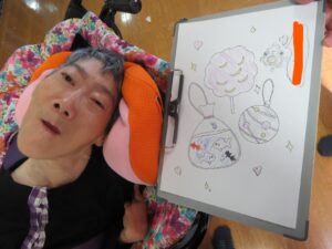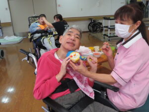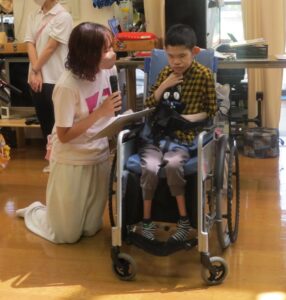 ご家族や職員から歌のプレゼントがありました。また、実習生の読み聞かせコーナーもあり、充実するものとなりました。ほかにも、夏の風物詩が書かれた塗り絵を行い、素敵な絵が完成しました!